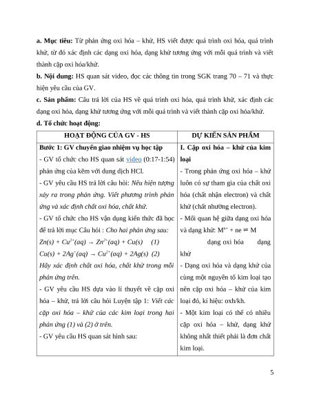 - Huy động được vốn hiểu biết, kĩ năng có sẵn của học sinh (về chất oxi hóa, chất khử,