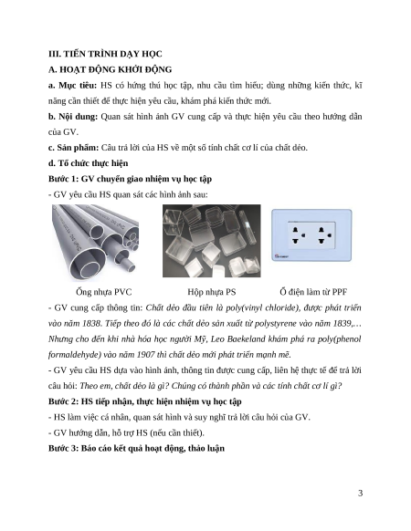 - GV yêu cầu HS quan sát các hình ảnh sau: Ống nhựa PVC Hộp nhựa PS Ổ điện làm từ PPF