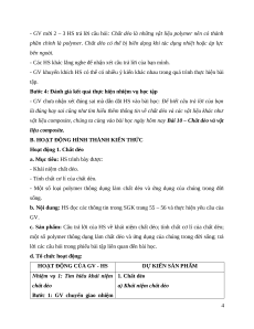- GV mời 2 – 3 HS trả lời câu hỏi: Chất dẻo là những vật liệu polymer nên có thành