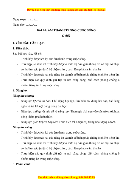 BÀI 10: ÂM THANH TRONG CUỘC SỐNG (2 tiết)