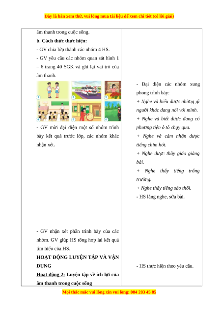 – 6 trang 40 SGK và ghi lại vai trò của âm thanh.