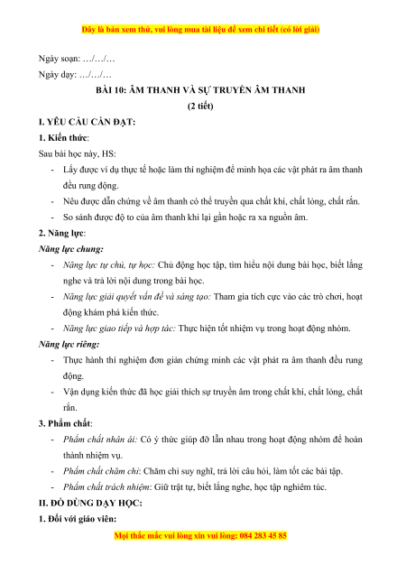 - Vận dụng kiến thức đã học giải thích sự truyền âm trong chất khí, chất lỏng, chất rắn. 3. Phẩm chất: