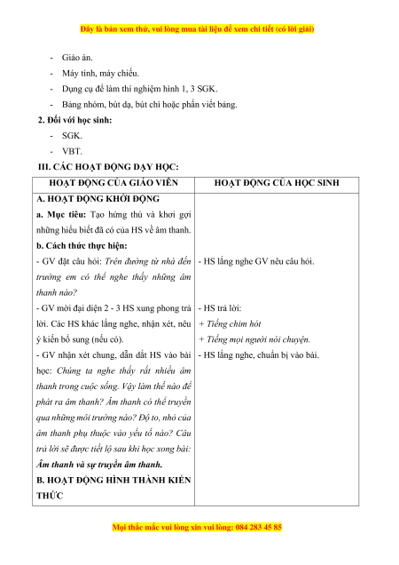 Hoạt động 1: Âm thanh và nguồn phát âm thanh