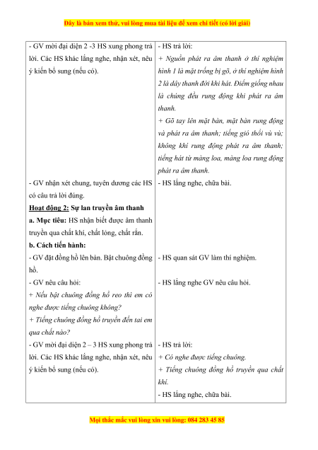 - Nêu được dẫn chứng về âm thanh có thể truyền qua chất khí, chất lỏng, chất rắn.