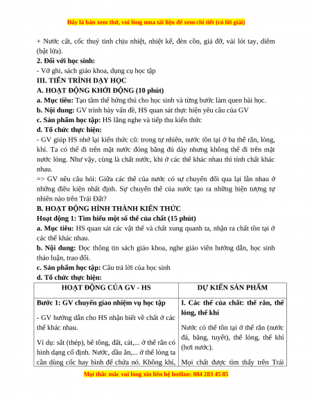 - GV hướng dẫn cho HS nhận biết về chất ở các thể khác nhau.