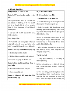 - Trình bày được quá trình diễn ra sự chuyển thể: nóng chảy; đông đặc; bay hơi; ngưng tụ; sôi.