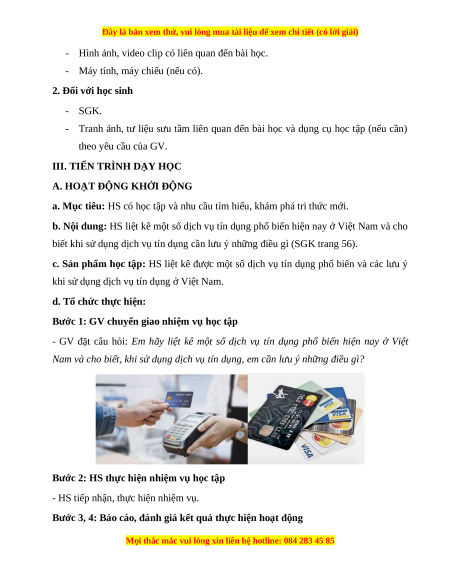- GV hướng dẫn, theo dõi, hỗ trợ HS nếu cần - Các hình thức tín dụng thương mại: thiết.
