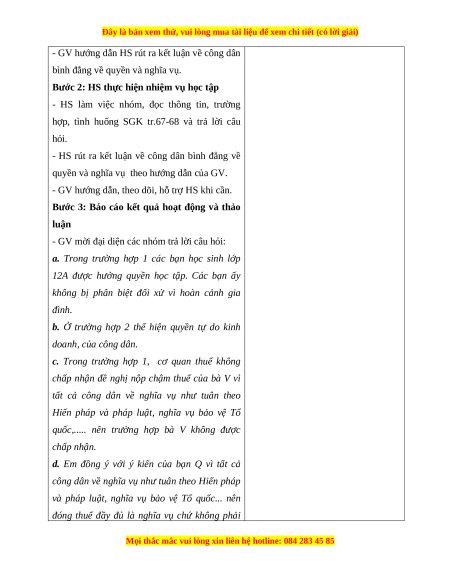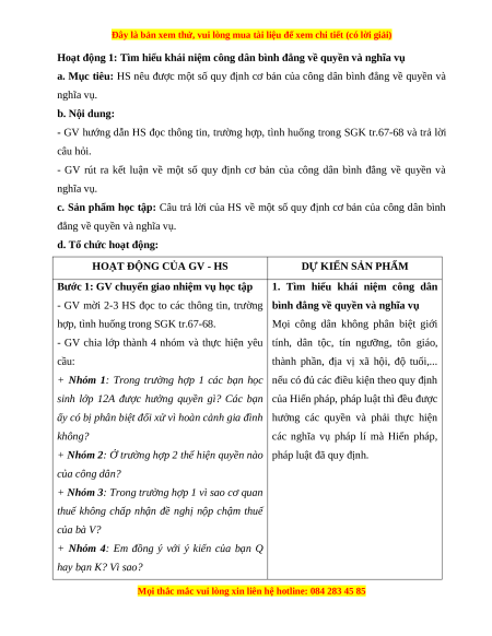 Giáo án Bài 10 KTPL 11 Cánh diều: Quyền bình đẳng của công dân trước pháp luật
