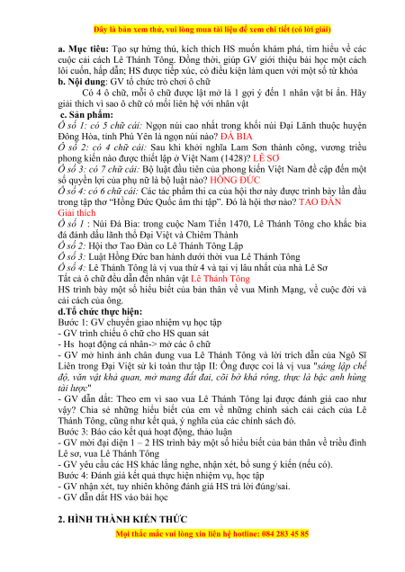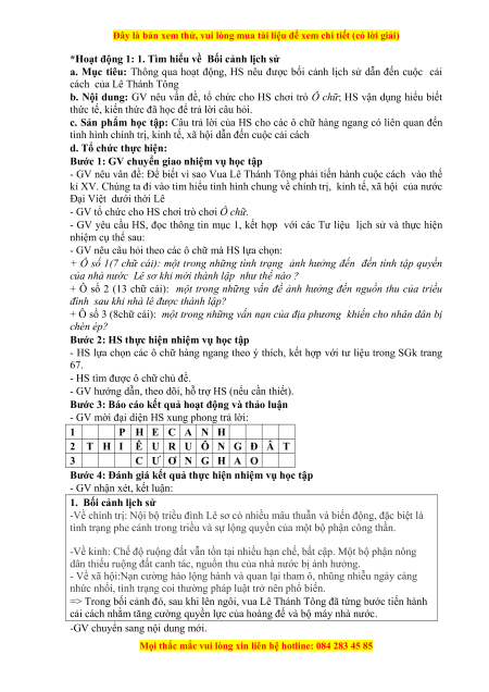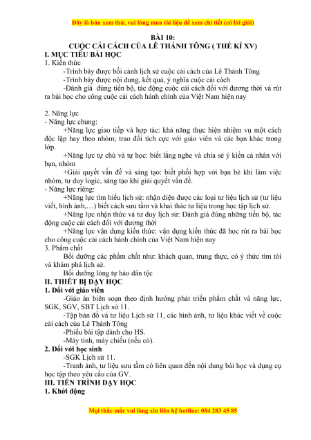 cuộc cải cách Lê Thánh Tông. Đồng thời, giúp GV giới thiệu bài học một cách