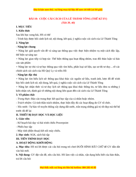 BÀI 10: CUỘC CẢI CÁCH CỦA LÊ THÁNH TÔNG (THẾ KỈ XV) (Tiết 39, 40) I. MỤC TIÊU 1. Kiến thức