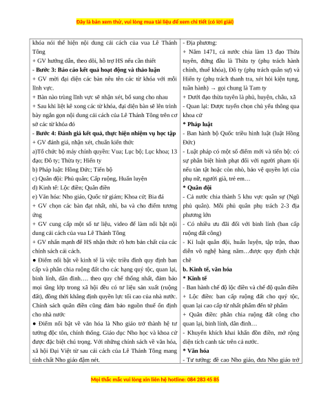 a. Mục tiêu: Trình bày được nội dung cuộc cải cách của vua Lê Thánh Tông