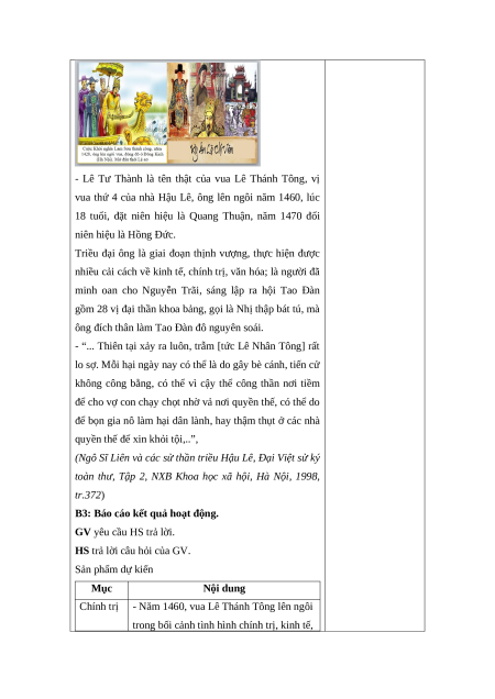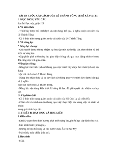 - Trình bày được bối cảnh lịch sử, nội dung, kết quả, ý nghĩa cuộc cải cách của Lê Thành Tông