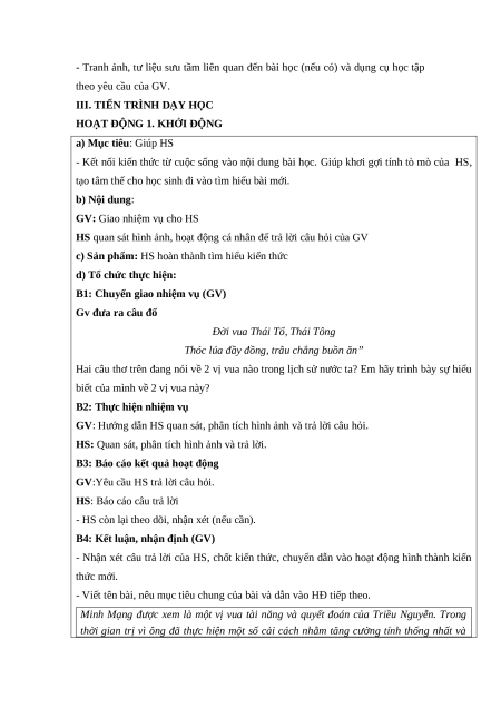 - Năng lực tìm hiểu lịch sử thông qua việc trình bày được bối cảnh lịch sử, nội dung