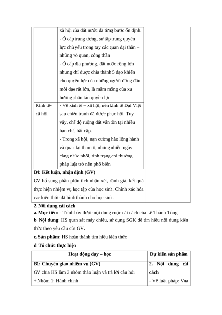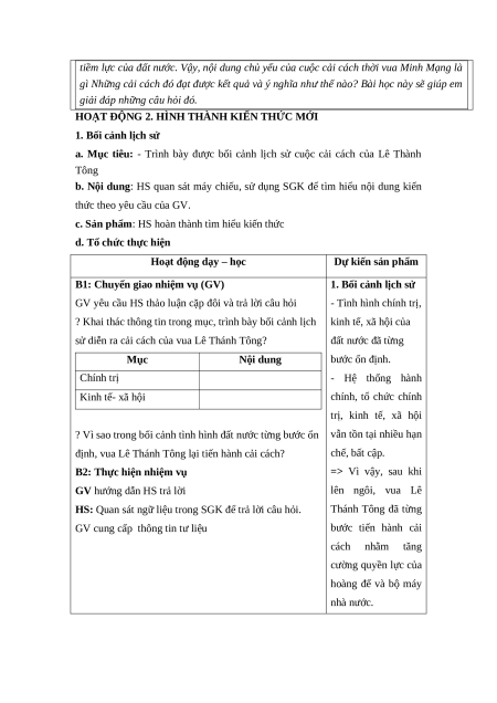 a. Mục tiêu: - Trình bày được bối cảnh lịch sử cuộc cải cách của Lê Thành Tông