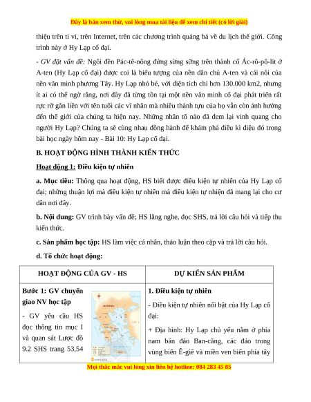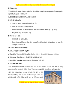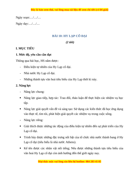 BÀI 10: HY LẠP CỔ ĐẠI (2 tiết) I. MỤC TIÊU