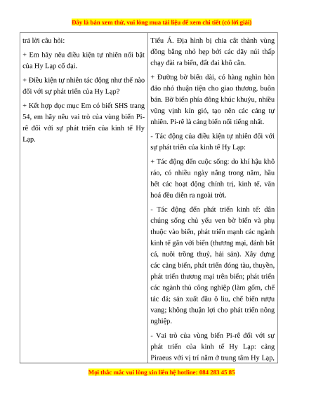 Giải thích được những tác động của điều kiện tự nhiên đến sự phát triển của Hy Lạp cổ đại.
