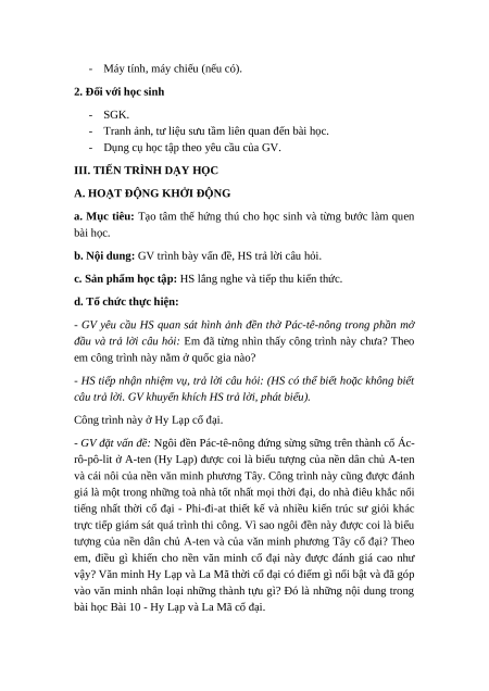 bài học Bài 10 - Hy Lạp và La Mã cổ đại.