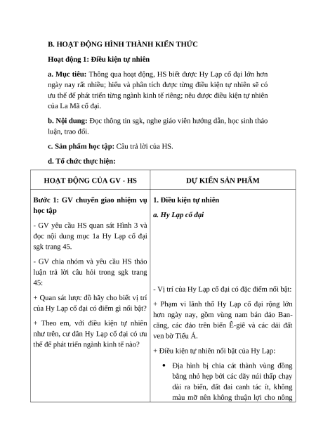 đọc nội dung mục 1a Hy Lạp cổ đại sgk trang 45.