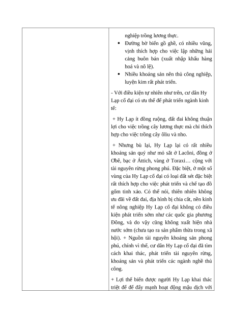 ưu thế để phát triển từng ngành kinh tế riêng; nêu được điều kiện tự nhiên của La Mã cổ đại.