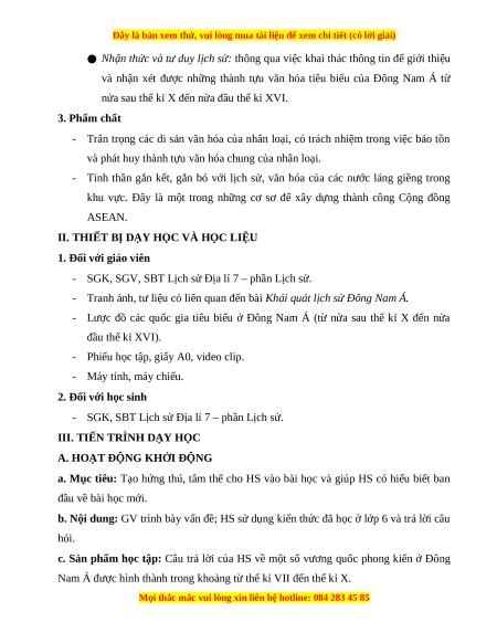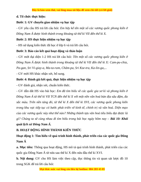 Giáo án Bài 10 Lịch sử 7 Cánh diều (Phiên bản 2): Khái quát lịch sử Đông Nam Á