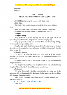 - Nhận biết được đời sống văn hóa xã hội thời Đinh Tiền Lê. 2. Năng lực a. Năng lực chung