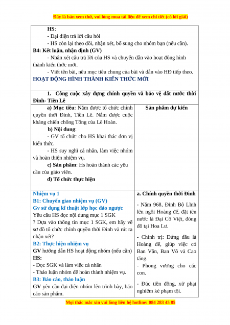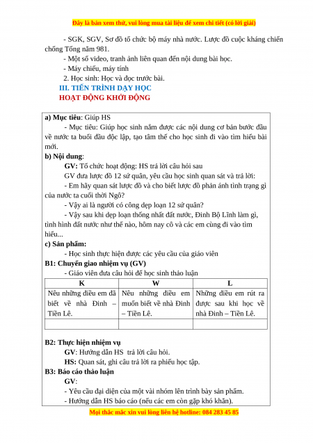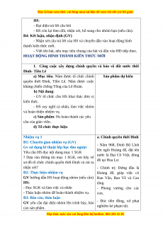về nước ta buổi đầu độc lập, tạo tâm thế cho học sinh đi vào tìm hiểu bài mới. b) Nội dung: