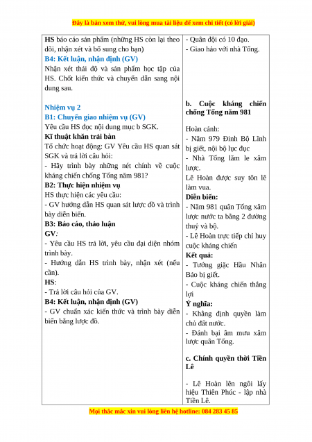 HS. Chốt kiến thức và chuyển dẫn sang nội dung sau. Nhiệm vụ 2 b. Cuộc kháng chiến chống Tống năm 981