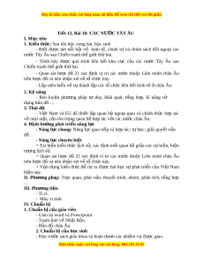 ế chính trị và chính sách đ i ố ngo i ạ các nư c ớ Tây Âu sau Chi n t ế ranh th gi ế i ớ th hai ứ . - Trình bày đư c ợ quá trình liên k t ế khu v c ự c a ủ các nư c ớ Tây Âu sau Chi n ế tranh thế gi i ớ th hai ứ . - Quan sát lư c ợ đồ 21 xác đ nh ị vị trí các nư c ớ thu c ộ Liên minh châu Âu trên lư c đ ợ ồ và nêu nh n ậ xét v t ề ch ổ c này ứ . - L p ni ậ ên bi u v ể s ề ự thành l p các ậ t ch ổ c ứ liên k t ế kinh t ế châu ở Âu. 2. Kỹ năng - Rèn luy n ệ phư ng