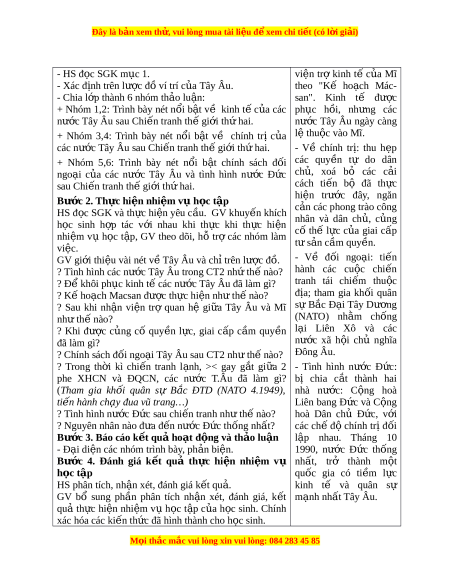 Đây là bản xem th , vu ử i lòng mua tài li u ệ đ xe ể m chi ti t (c ế ó l i ờ gi i ả ) - HS đ c SG ọ K m c 1. ụ viện trợ kinh tế c a ủ Mĩ - Xác định trên lư c đ ợ ví ồ trí c a ủ Tây Âu. theo "Kế ho ch ạ Mác- - Chia l p ớ thành 6 nhóm th o ả lu n: ậ san". Kinh tế đư c ợ