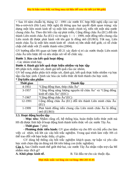 ả sau: Quá trình thành l p ậ Liên minh châu Âu: Th i ờ gian Thành l p ậ 4/1951 3/1957 7/1967 12/1991 1/1999 Bư c ớ 2. Thực hi n nh ệ i m ệ v h ụ c t ọ p ậ HS đ c ọ SGK và th c ự hi n ệ yêu c u. ầ GV khuy n ế khích h c ọ sinh h p ợ tác v i ớ nhau khi th c ự khi th c ự hi n ệ nhi m ệ vụ h c ọ t p