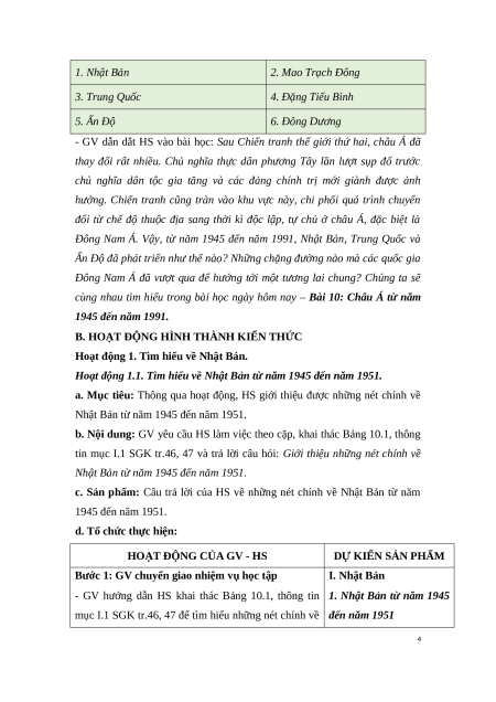 Giáo án Bài 10 Lịch sử 9 Cánh diều: Châu Á từ năm 1945 đến năm 1991