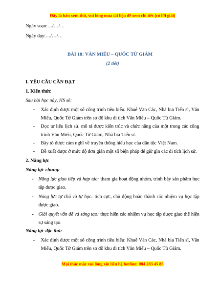 BÀI 10: VĂN MIẾU – QUỐC TỬ GIÁM (2 tiết)