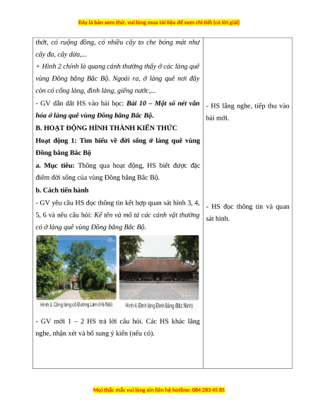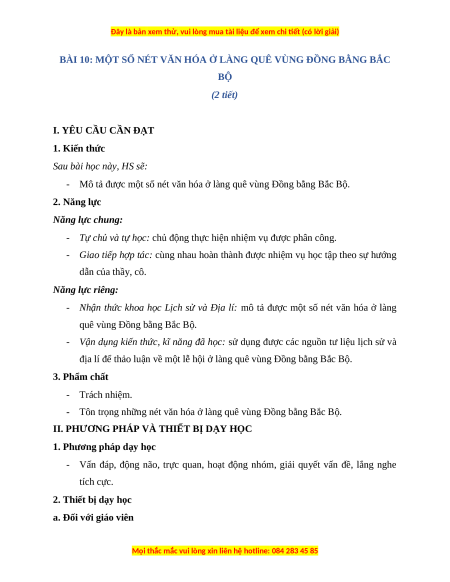 BÀI 10: MỘT SỐ NÉT VĂN HÓA Ở LÀNG QUÊ VÙNG ĐỒNG BẰNG BẮC BỘ (2 tiết)