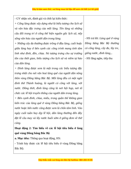 địa lí để thảo luận về một lễ hội ở làng quê vùng Đồng bằng Bắc Bộ. 3. Phẩm chất - Trách nhiệm.