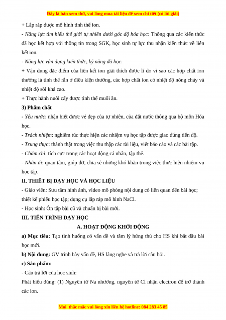 + Thực hành nuôi cấy được tinh thể muối ăn. 3) Phẩm chất