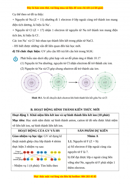 Giáo án Bài 10: Liên kết ion Hóa học 10 Cánh diều