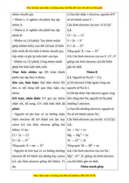 đưa ra nội dung kết quả thảo luận của nguyên tử Na là 1. nhóm.