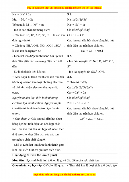 + Mô tả được sự hình thành liên kết ion, vận dụng vào một số trường hợp cụ thể.