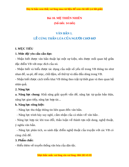 Bài 10. MẸ THIÊN NHIÊN (S t ố i t ế : 14 ti t ế ) VĂN BẢN 1.