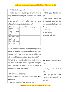 ậ xét, bổ sung câu trả l i ờ c a ủ b n. ạ Bư c ớ 4: Đánh giá k t ế quả th c ự hi n ệ nhi m ệ vụ + GV nh n xét ậ , bổ sung, ch t ố l i ạ ki n t ế h c => ứ Ghi lên b ng ả GV chu n ẩ ki n ế th c: ứ Đây là m t ộ văn b n ả thuêyst minh thu t ậ l i ạ sự ki n ệ lễ cúng th n ầ lúa c a ủ ngư i ờ Cha-ro. Các sự ki n ệ đư c ợ trình bày theo trình tự th i