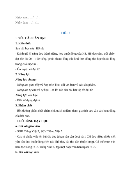chảy, đạt tốc độ 90 – 100 tiếng/ phút, thuộc lòng các khổ thơ, dòng thơ đã học