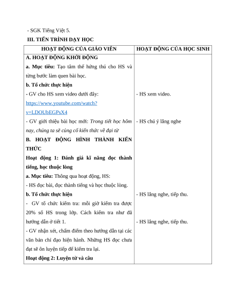 III. TIẾN TRÌNH DẠY HỌC
