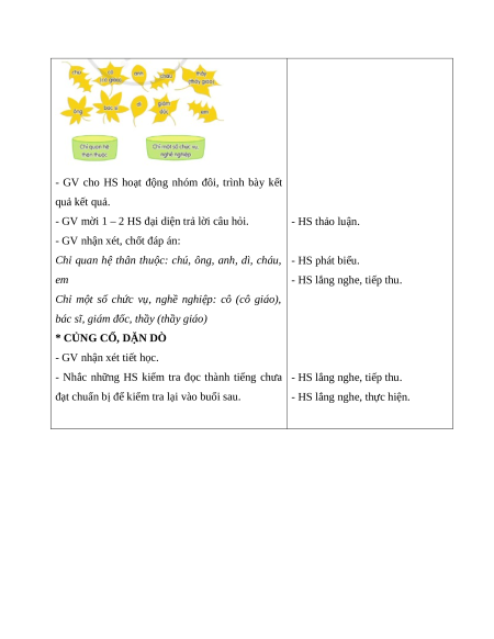 - Năng lực giao tiếp và hợp tác: Trao đổi với bạn về nhiệm vụ hoạt động.