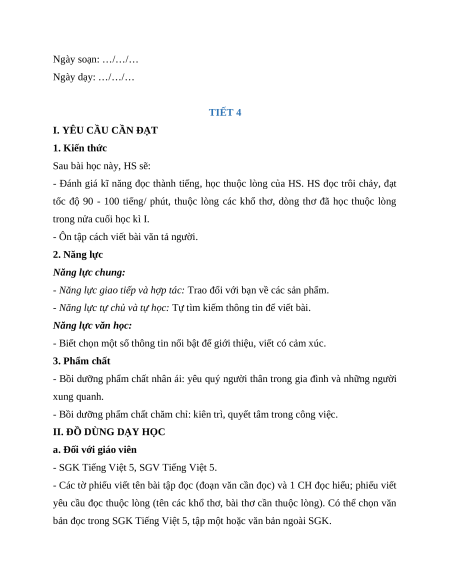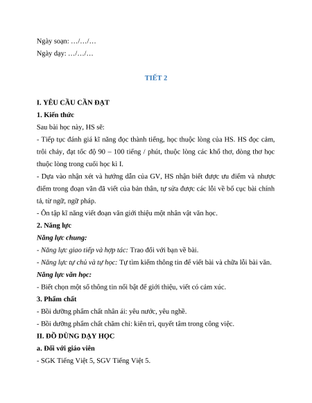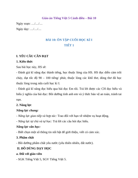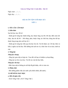 Giáo án Tiếng Việt 5 Cánh diều – Bài 10 Ngày soạn: …/…/… Ngày dạy: …/…/…