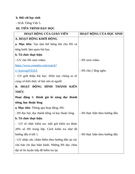 b. Đối với học sinh - SGK Tiếng Việt 5.