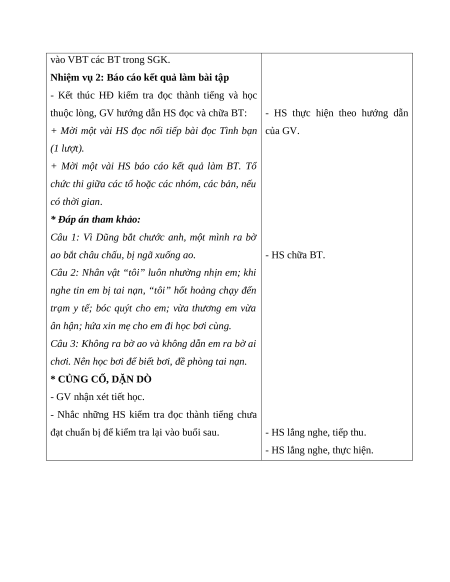 hiểu ý nghĩa của bài đọc: Bồi dưỡng tình anh em và ý thức bảo vệ an toàn, tránh tai nạn. 2. Năng lực