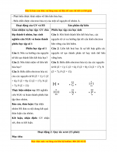 - Nêu được xu hướng của nguyên tử khi hình thành liên kết hóa học.