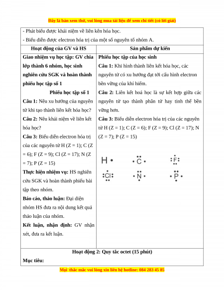 nghiên cứu sách giáo khoa, thảo luận nhóm để hiểu nội dung và vận dụng quy tắc octet