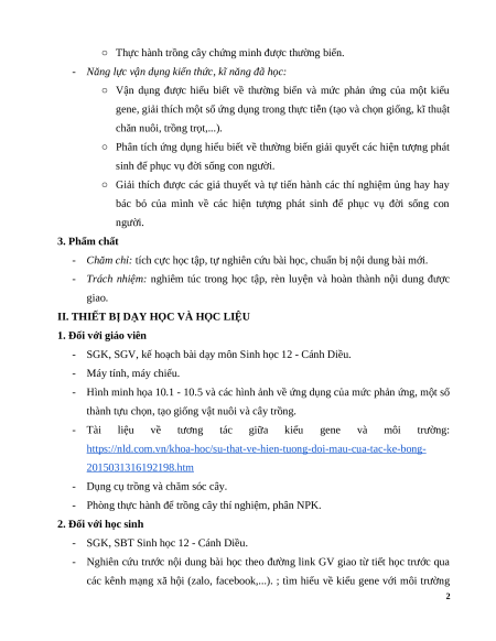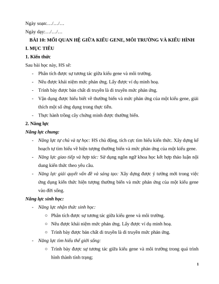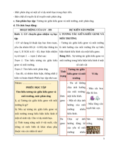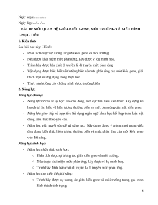 Giáo án Bài 10 Sinh học 12 Cánh diều: Mối quan hệ giữa kiểu gene, môi trường và kiểu hình