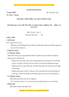 TÊN BÀI DẠY: LƯU TRỮ DỮ LIỆU VÀ KHAI THÁC THÔNG TIN PHỤC VỤ